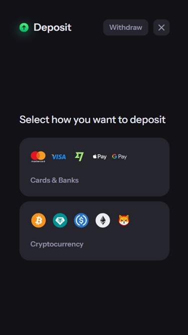 ولكن إلى جانب العملات المشفرة الشهيرة دائمًا، يتمتع اللاعبون أيضًا بخيار استخدام مجموعة كبيرة من العملات الورقية بالإضافة إلى طرق الخدمات المصرفية الشائعة مثل التحويل البنكي، و Apple Pay ، وDash، وGoogle Pay ، و Visa على سبيل المثال لا الحصر.