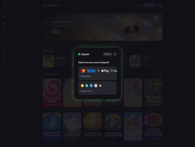 يقدم كازينو CandyBet مجموعة واسعة من حلول العملات المشفرة الشائعة ، مما يضمن دفعات سريعة للغاية ومعالجة آمنة للبيانات المصرفية. تشمل قائمة العملات التي يمكنك استخدامها بيتكوين، كاردانو، لايتكوين، إيثريوم ، لايتكوين، سولانا، تيثر، ترون، و USD Coin.