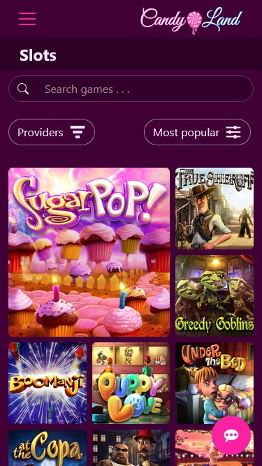 بعض موردي برامج الكازينو عبر الإنترنت الذين يتعاونون مع CandyLand Casino هم BetSoft وRival وDragon Gaming، والذين يقدمون محتوى محسّنًا عبر الأنظمة الأساسية والذي سيتم تحميله بشكل مثالي على جميع الأجهزة المتاحة، سواء سطح المكتب أو الهاتف المحمول.