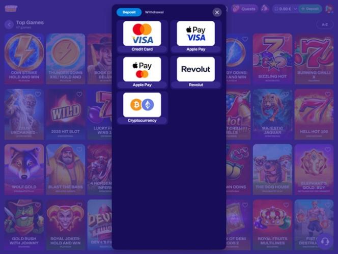 لإيداع وسحب الأموال، يتيح Candyspinz للاعبين استخدام خيارات دفع متعددة، تقليدية وحديثة. للطرق التقليدية، يمكنك استخدام Visa و Mastercard وSkrill و Neteller و Paysafecard و Google Pay و Apple Pay والتحويل البنكي . وللطرق الحديثة، يمكنك استخدام العديد من العملات المشفرة مثل Bitcoin و Ethereum و Litecoin و Tron و Ripple .