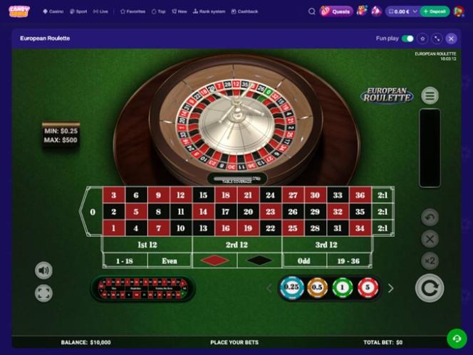 لكن التنوع لا ينتهي هنا. Candyspinz هو كازينو على الإنترنت يقدم أيضًا قائمة واسعة من ألعاب الطاولة لتختار من بينها، بما في ذلك أشهر الألعاب الكلاسيكية مثل الروليت والبوكر والباكارات والبلاك جاك ، ويمكنك تجربتها في كل من إصدار الموزع المباشر وإصدارات الكمبيوتر. نوصي بلعب روليت الباب الأحمر، والبلاك جاك اللانهائي، والباكارات، وبوكر الثلاث بطاقات.
