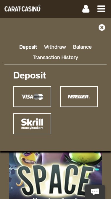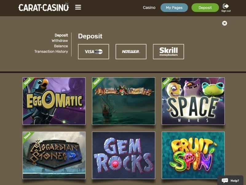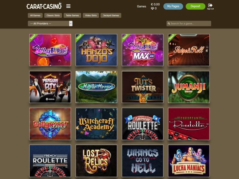 كازينو كارات مدعوم من Microgaming, Net Entertainment, Genesis Gaming, Play'n GO, Quickspin, Games Global and NextGen ، وتُقدم ألعابه عبر منصة ويب. كما يوفر الكازينو موقعًا للهواتف المحمولة للاعبين الراغبين باللعب عبر هواتفهم الذكية وأجهزتهم اللوحية.خيارات الخدمات المصرفية في Carat Casino