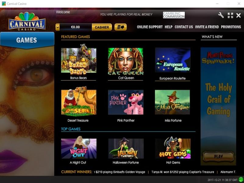 يتم تشغيل كازينوهات الكرنفال بواسطة برنامج الألعاب Playtech .