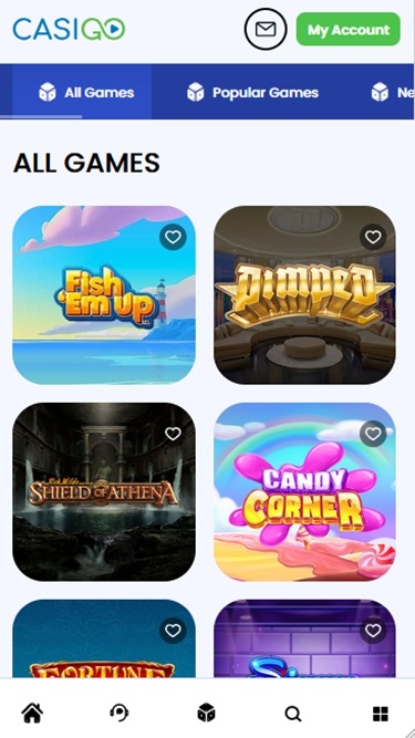 CasiGO هو موقع مراهنات عبر الإنترنت تديره شركة White Hat Gaming Limited. يعتمد الكازينو على الشعبية المتزايدة لألعاب الجوال، مما يتيح لك الوصول إلى الموقع عبر هاتفك أو جهازك اللوحي. مع ذلك، يمكن للاعبين اللعب على أجهزة الكمبيوتر إذا رغبوا في ذلك، وفي كلتا الحالتين، سيحظون بمكتبة ألعاب ضخمة، ومكافآت مميزة، وخدمة عملاء ممتازة.معلومات الكازينو