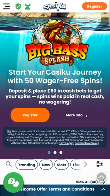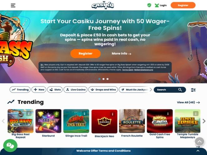 لمن يبحث عن كازينو إلكتروني يوفر خيارات لعب شاملة، لا بد أن يجد كازينو Casiku خيارًا مثاليًا. فقد بذلت هذه العلامة التجارية جهودًا كبيرة لتقديم مكتبة ضخمة من ألعاب السلوتس الإلكترونية، وألعاب الطاولة، وألعاب الموزعين المباشرين، والعديد من الألعاب الأخرى مثل بطاقات الخدش ، والبينغو، وألعاب التحطيم.