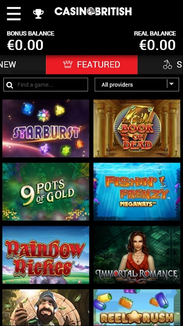 يعمل كازينو بريتيش بواسطة Microgaming, Net Entertainment, BetSoft, 1x2gaming, Barcrest, Big Time Gaming, ELK Studios, Evolution Gaming, EYECON, Genesis Gaming, Habanero Systems, lightningboxgames, Play'n GO, playson, Quickspin, Rabcat, Rival, Thunderkick, Vivo Gaming, Wazdan, Booming Games, BetConstruct, Pragmatic Play, Nolimit City, LuckyStreak, Spinomenal, Skillzzgaming, Fugaso, Fantasma Games, Revolver Gaming, Triple Edge Studios, Evoplay, Stormcraft Studios, Switch Studios, All41 Studios, TVBet, Gameburger Studios, Pulse 8 Studios, Neon Valley Studios, Super Spade Games, Shuffle Master, SpinPlay Games, Games Global, 2by2 Gaming, Blueprint Gaming, Games Warehouse, NextGen, Tom Horn Gaming, WMS, Genii, Red7Mobile, CORE Gaming, Scientific Games, Iron Dog Studio, Foxium, Betdigital, Just For The Win, PearFiction Studios, Slingshot Studios, Fortune Factory Studios, Gamevy, Crazy Tooth Studio, Alchemy Gaming, Gold Coin Studios and Half Pixel Studios ، وتُقدم ألعابه عبر منصة لعب فوري على الإنترنت. هذا يعني أن اللاعبين يُحمّلون ألعاب الكازينو عبر متصفح الإنترنت، بدلاً من استخدام برنامج مُرهق قابل للتنزيل. كما يُتاح اللعب عبر الهاتف المحمول في كازينو بريتيش، مع توافقه مع الهواتف الذكية والأجهزة اللوحية.المقامرة المسؤولة ودعم العملاء والأمان
