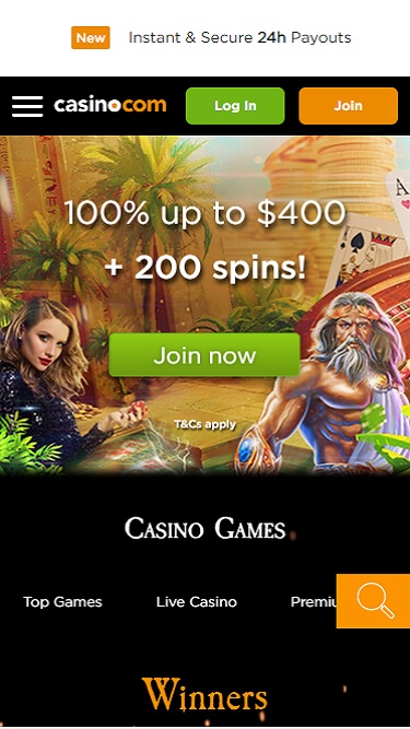 موقع Casino.com مفتوح منذ عام ٢٠٠٧، وهو مملوك لشركة الألعاب مانشن ليمتد، التي تدير أيضًا كازينو ليسا. بالإضافة إلى امتلاكه ربما أكثر مواقع المقامرة ربحًا في العالم، يتميز Casino.com بالعديد من الميزات التي تجعله وجهةً جديرةً بتجربة ألعاب الكازينو. بشكل عام، حظي Casino.com بإشادة واسعة بفضل تشكيلة ألعابه الواسعة وبرنامج كبار الشخصيات المميز، ولكنه انتقد بسبب حدود السحب الشهرية، وإمكانية استرداد أرباح الكازينو لبضعة أيام.معلومات الكازينو