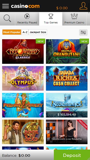 يعتمد موقع Casino.com على Microgaming, Net Entertainment, Playtech, Barcrest, Big Time Gaming, EYECON, Oryx, Play'n GO, Quickspin, Rabcat, Realistic Games, Pragmatic Play, Red Tiger Gaming, Skywind, Triple Edge Studios, Northern Lights Gaming, Stormcraft Studios, Switch Studios, All41 Studios, Gameburger Studios, Pulse 8 Studios, Slot Factory, Neon Valley Studios, SpinPlay Games, GONG Gaming, Buck Stakes Entertainment, Games Global, Ash Gaming, Bally Technologies, Blueprint Gaming, WMS, SG Interactive, Red7Mobile, Scientific Games, Reel Time Gaming, Old Skool Studios, Foxium, Betdigital, Just For The Win, PearFiction Studios, Wild Streak Gaming, Slingshot Studios, Fortune Factory Studios, Crazy Tooth Studio, Alchemy Gaming, Rarestone Gaming, Snowborn Games, Gold Coin Studios, Half Pixel Studios, Eurostar Studios, Aurum Signature Studios, Lucksome Gaming, Area Vegas and Leap Gaming ، الذي يوفر العشرات من الألعاب بما في ذلك ألعاب الطاولة، والفتحات، وألعاب الفيديو بوكر، وغير ذلك الكثير.خيارات الخدمات المصرفية في Casino.com