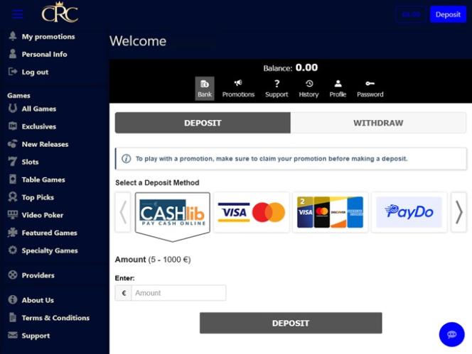 يتم تشغيل Casino Royal Club بواسطة Rival ، وتتوفر ألعاب الكازينو من خلال برنامج قابل للتنزيل ومنصة تعتمد على الويب.خيارات الخدمات المصرفية في Casino Royal Club