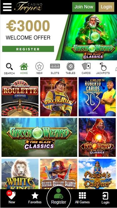 يقدم كازينو تروبيز أيضًا الألعاب المحمولة.