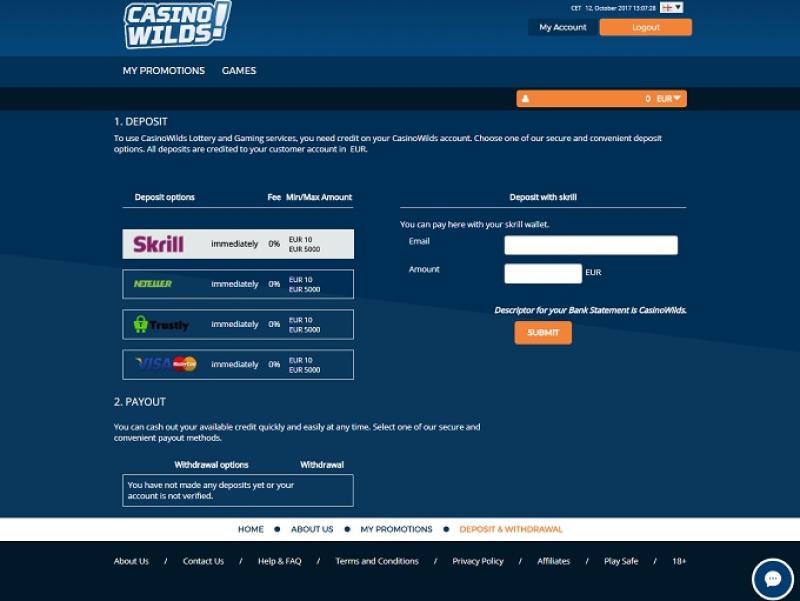 يتميز كازينو وايلدز بالنظام المصرفي الممتاز، حيث يوفر الموقع إمكانية الإيداع والسحب عبر نيتيلر، سكريل، تراستلي، فيزا، باجل باي، باي سيف كارد، والتحويل البنكي. يتميز الكازينو أيضًا بصرف جميع الأرباح خلال 48 ساعة. في حال وجود أي مشكلة، يُمكن صرف الأرباح التي تزيد عن 100,000 دولار أمريكي على 10 أقساط شهرية.