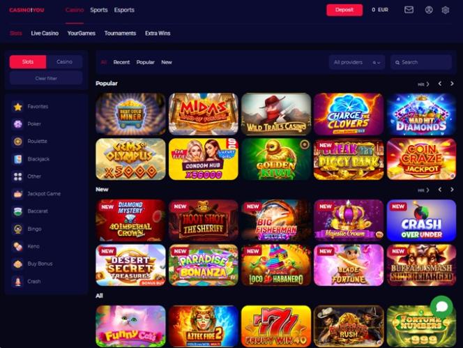 ستجد أكثر من 1000 لعبة من تشكيلة مختارة بعناية من أبرز مقدمي الخدمات، بحيث تكون كل دورة، أو رمية بطاقة، أو رمية نرد مدعومة بأحدث التقنيات. من ماكينات القمار الإلكترونية إلى ألعاب الكازينو المباشرة ، يقدم CasinoAndYou ما يناسب جميع الأذواق والتفضيلات.