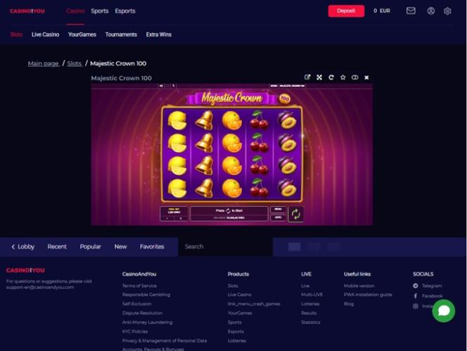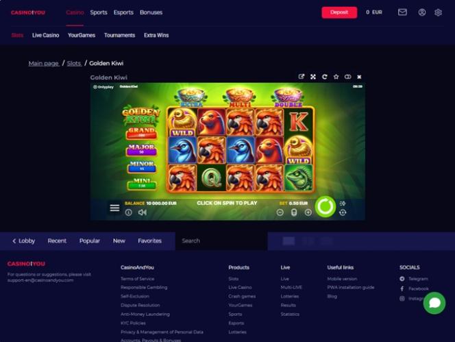 يقدم CasinoAndYou تجربةً فريدةً من نوعها بلمسةٍ عصريةٍ وحديثةٍ في عالم الألعاب الإلكترونية، مقدمًا تجربةً فريدةً للاعبين. أُطلق الموقع في مايو 2025 من قِبل شركة المراهنات العالمية BETANDYOU، وسرعان ما اكتسب شعبيةً واسعةً في دولٍ مثل البرتغال، والنمسا، وبولندا، وإسبانيا، وتركيا، والصومال، وأوزبكستان.