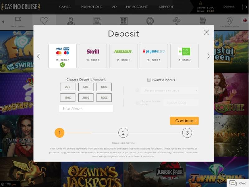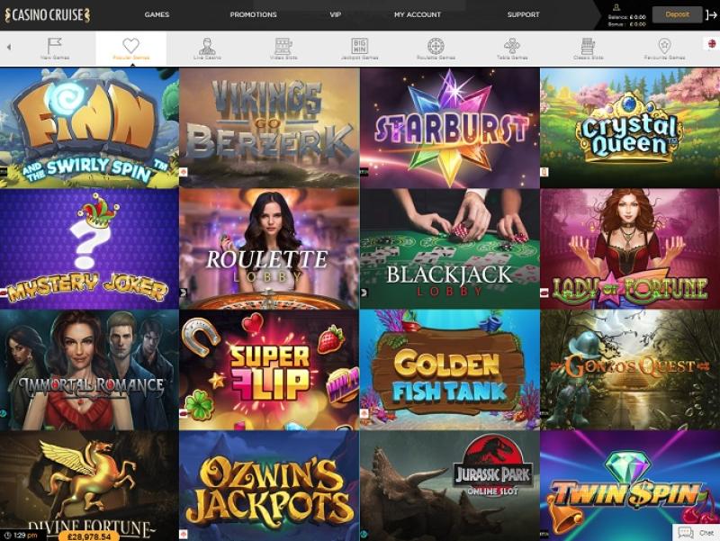 يعتمد موقع CasinoCruise على Microgaming, Net Entertainment, Big Time Gaming, Evolution Gaming, Ezugi, iSoftBet, lightningboxgames, Oryx, Play'n GO, Quickspin, Relax Gaming, Yggdrasil, Wazdan, Pragmatic Play, Red Tiger Gaming, Skillzzgaming, Skywind, Triple Edge Studios, Northern Lights Gaming, Switch Studios, All41 Studios, Gameburger Studios, Neon Valley Studios, Golden Rock Studios, TrueLab Games, SpinPlay Games, GONG Gaming, Buck Stakes Entertainment, Games Global, 2by2 Gaming, Gamomat, Foxium, Just For The Win, PearFiction Studios, Slingshot Studios, Fortune Factory Studios, Crazy Tooth Studio, Alchemy Gaming, Snowborn Games, Gold Coin Studios, Half Pixel Studios, Eurostar Studios and Aurum Signature Studios ، الذي يوفر مئات الألعاب المختلفة من بعض أفضل مطوري الألعاب عبر الإنترنت.