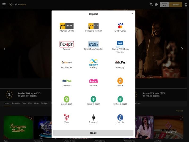 يتم تشغيل CasinoExtra بواسطة Net Entertainment, Playtech, BetSoft, Evolution Gaming, Ezugi, Habanero Systems, iSoftBet, Oryx, Play'n GO, playson, Quickspin, Relax Gaming, Saucify, Thunderkick, Visionary iGaming, WM, Yggdrasil, Wazdan, GameArt, Booming Games, Stakelogic, Pragmatic Play, Nolimit City, Felt Gaming, Red Tiger Gaming, Booongo, Air Dice, LuckyStreak, Spinomenal, Fantasma Games, SYNOT Games, Revolver Gaming, Spin Games, Spinmatic, BGAMING, Evoplay, Electric Elephant Games, Bulletproof Games, Gluck Games, Mascot Gaming, Spearhead Studios, Swintt, Mancala Gaming, SmartSoft Gaming, Blue Guru Games, Lady Luck Games, UP Games, Amusnet Interactive, CT Interactive, Push Gaming, Genii, Gamomat, Reflex Gaming, Storm Gaming Technology, Wild Streak Gaming, Golden Hero, 4ThePlayer, AvatarUX, Gamevy, ReelPlay, Japan Technicals Games, Rarestone Gaming, Boomerang Studios, Hacksaw Gaming, Max Win Gaming, Bang Bang Games, Gamzix, Slotmill, SilverBack Gaming, Peter And Sons, Armadillo Studios and FlipLuck ، والذي يمنح الكازينو مكتبة ضخمة من الألعاب من خلال موقع الكازينو على الويب، حيث يمكنك لعب ألعاب الكازينو مباشرة من خلال متصفح الويب الخاص بك.خيارات الخدمات المصرفية في CasinoExtra