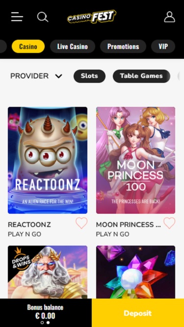 فيما يلي أيضًا بعض ألعاب الطاولة الشهيرة التي يمكن للاعبين تجربتها في CasinoFest: Multihand Blackjack، Roulette، Baccarat، PowerUP Roulette، Blackjack، Roulette Relax Gaming، Blackjack+، Blackjack Multi Hand، Ruby Speed Blackjack 4، Ruby Speed Blackjack 3، High Card Flush…