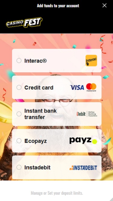 خيارات الخدمات المصرفية في CasinoFest