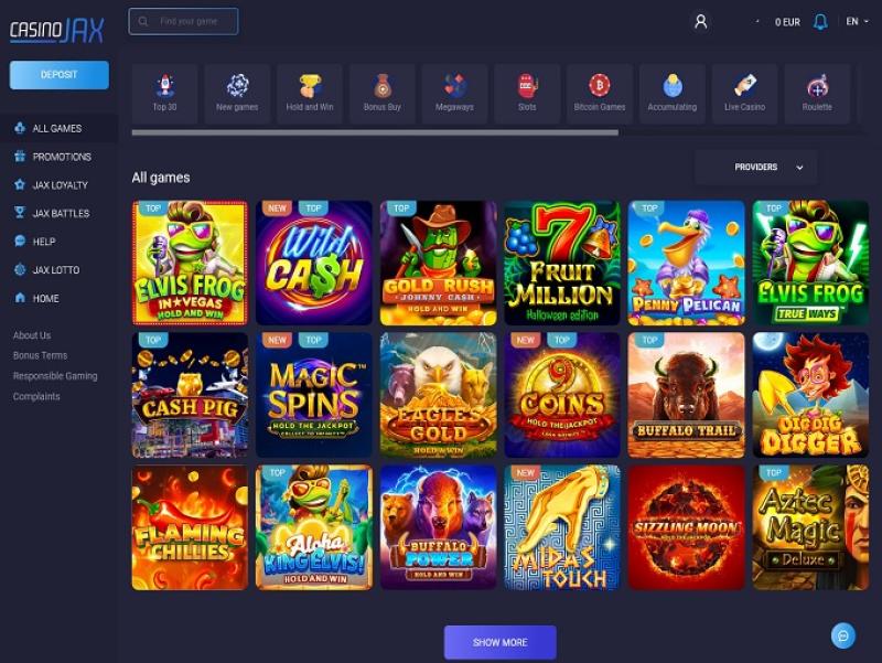 يمكن ربح نقاط JAX من خلال لعب ألعاب السلوتس الإلكترونية فقط، في وضع اللعب بأموال حقيقية . جميع المكافآت والدورات الإضافية تأتي مع متطلبات رهان.