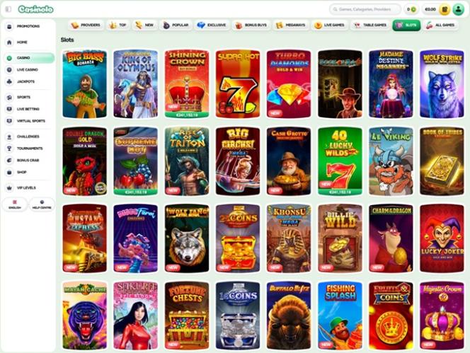 كما ذكرنا سابقًا، يفخر الكازينو بتشكيلة رائعة من ألعاب الكازينو المتنوعة. أما عشاق ماكينات القمار، فسيحظون بفرصة مميزة، إذ تتوفر آلاف الألعاب للاختيار من بينها. إليكم بعضًا منها: