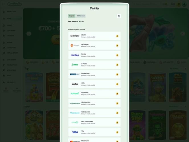 يقدم كازينولو خيارات دفع متنوعة لمعاملات الإيداع والسحب. سواءً كنت تفضل طرق الدفع المجربة مثل ماستركارد، أو المحافظ الإلكترونية مثل سكريل ونيتلر، ستجد ما يناسبك.