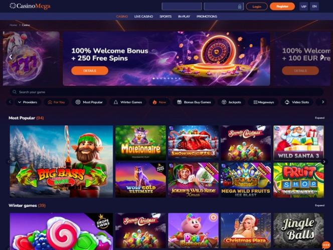 لحسن الحظ، يقدم كازينو ميجا العديد من المكافآت . سيتمكن اللاعبون من الاستمتاع بمكافآت الكازينو والرياضات الأولى والثانية، واسترداد نقدي فوري، ومكافأة جيتون غير اللاصقة، والبطولات، والسباقات الأسبوعية.