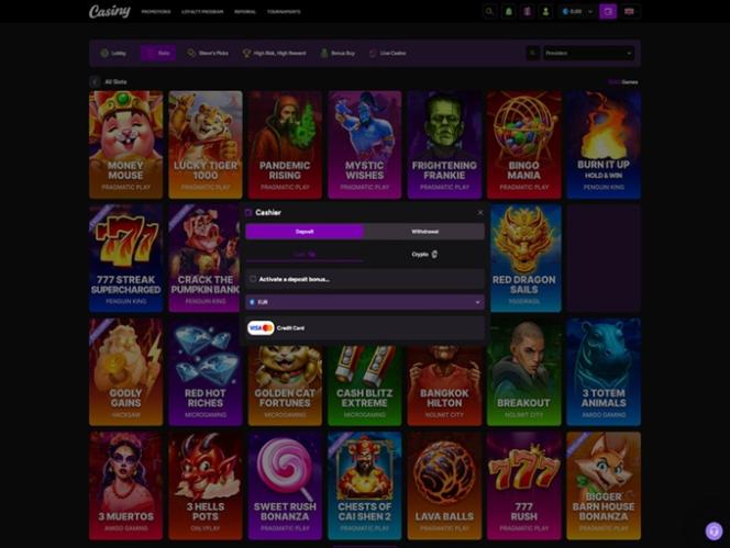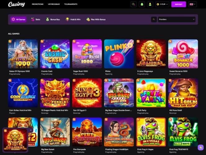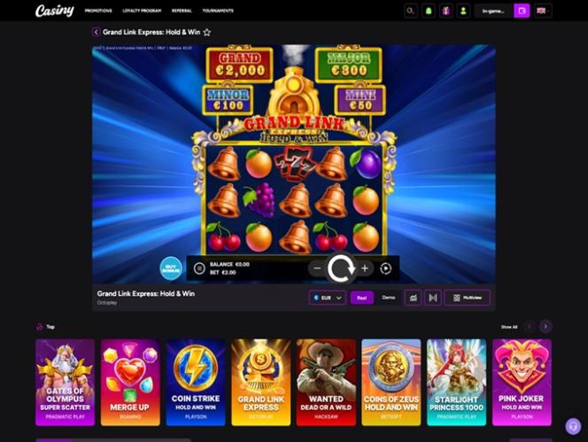 مع أكثر من 90 موفرًا للبرمجيات ، يوفر كازينو Casiny للاعبين مجموعة كبيرة من الاستوديوهات الأسطورية والأسماء الناشئة التي تستحق التحقق منها بلا شك.