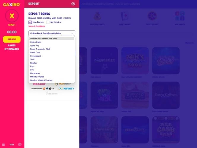 خيارات الخدمات المصرفية في Caxino Casino