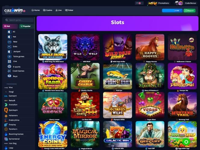 على الرغم من أن كازينو CazWin يضم قائمة واسعة ومتنوعة من ألعاب الكازينو، إلا أن مجموعته من ماكينات القمار الإلكترونية رائعة. يضم الكازينو مجموعة واسعة من ماكينات القمار عالية الجودة، ومن أشهرها: