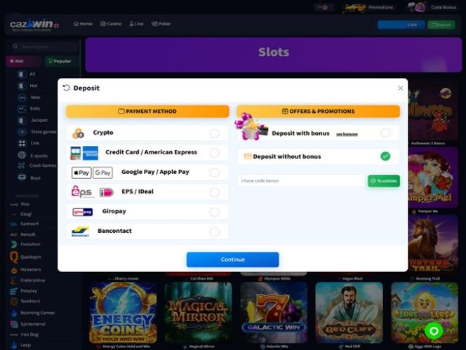 يقدم CazWin مجموعةً استثنائيةً من طرق الدفع التي يمكن للاعبين استخدامها للإيداع والسحب. يقبل الموقع أكثر من 50 عملة مشفرة، من بينها بيتكوين ، وبيتكوين كاش ، وكاردانو ، وداش ، ودوجكوين ، وبولكادوت ، وإيثريوم ، وإيوس ، ولايتكوين ، وسولانا ، وتيثر ، وترون ، ومونيرو ، و USD Coin ، وريبل ، وتونكوين .