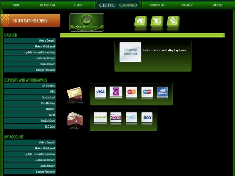 خيارات الخدمات المصرفية في Celtic Casino