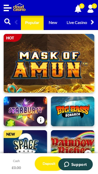 يتم تشغيل Cloud Casino بواسطة Microgaming, Net Entertainment, Big Time Gaming, ELK Studios, Evolution Gaming, EYECON, Habanero Systems, lightningboxgames, Realistic Games, Pragmatic Play, Red Tiger Gaming, Skillzzgaming, Golden Rock Studios, Games Global, Blueprint Gaming, Merkur Gaming, Nektan, NextGen, NYX Interactive, Inspired Gaming, Scientific Games, Iron Dog Studio, Foxium, Just For The Win, The Games Company, Rocksalt Interactive, 4ThePlayer, Crazy Tooth Studio, ReelFeel Gaming and Half Pixel Studios ، ويتم توفير ألعاب الكازينو الخاصة به من خلال منصة تعتمد على الويب بالإضافة إلى موقع محمول، مما يسمح باللعب عبر الهواتف الذكية والأجهزة اللوحية.خيارات الخدمات المصرفية في Cloud Casino