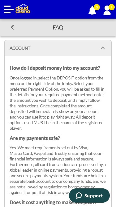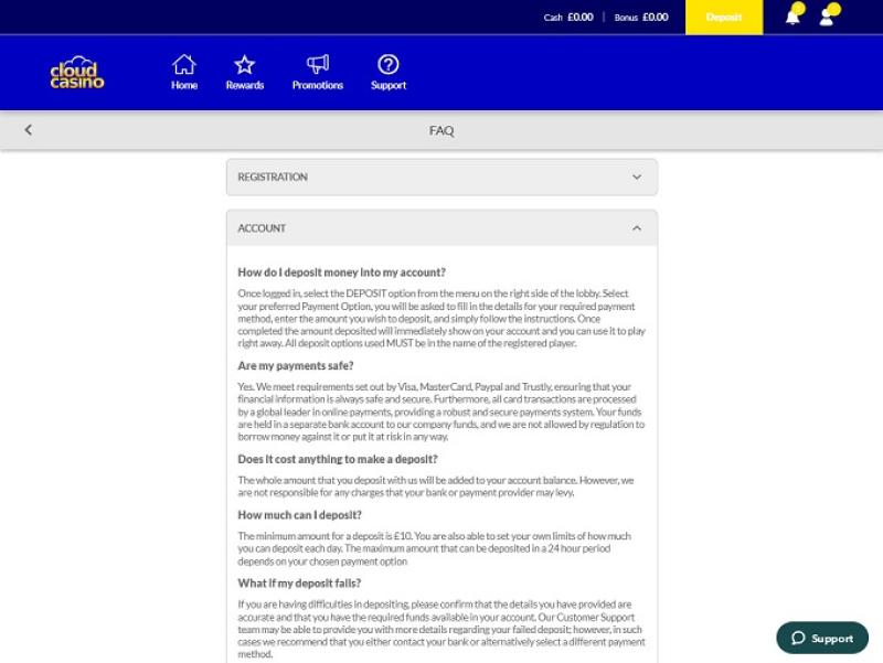 على الرغم من أن كازينو Cloud لا يقدم نقاط المكافأة التقليدية، إلا أن الكازينو لديه عروض ترويجية مختلفة مثل استرداد النقود التي تكافئك على اللعب في الموقع.معلومات الترخيص