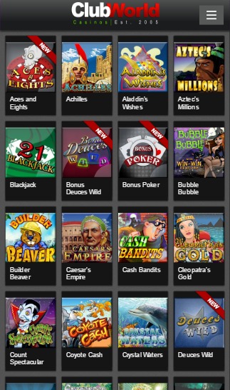 يوفر نادي العالم برنامج Real Time Gaming للتنزيل أو اللعب الفوري. للوصول إلى مجموعة الألعاب الكاملة، يجب على اللاعبين تنزيل الكازينو.