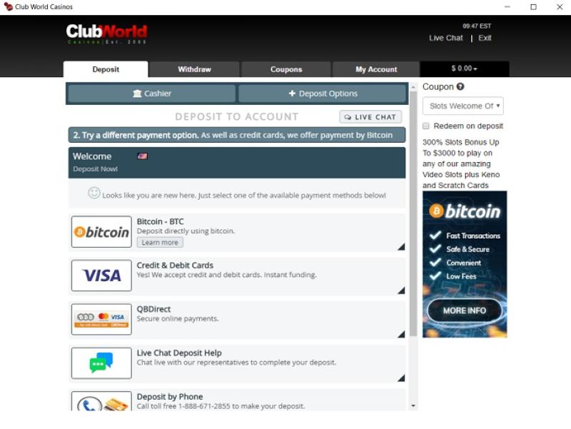 النظام المصرفي في كازينو كلوب وورلد جيد جدًا لموقع يُناسب اللاعبين الأمريكيين. يمكن للاعبين الإيداع عبر بطاقات الائتمان، أو المحافظ الإلكترونية، أو التحويلات البنكية، كما تتم معالجة المدفوعات بطرق مماثلة. تتمتع مجموعة كلوب وورلد بسجل حافل من الدفعات المنتظمة، على الرغم من أن أوقات الدفع ليست الأسرع نظرًا للقيود المفروضة على معاملات المقامرة في الولايات المتحدة. مع ذلك، يُعد النظام هنا من بين أفضل الأنظمة التي رأيناها في كازينو يخدم السوق الأمريكية.