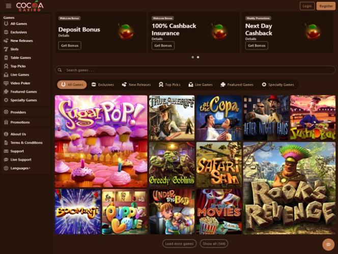 يتم تشغيل كازينو Cocoa بواسطة BetSoft, Genesis Gaming, Rival, Saucify, Spinomenal, Radi8 Games, Fresh Deck Studios, Woohoo Games, Qora Games, Genii, Wager Gaming, Dragon Gaming and Dragoon Soft ، مما يمنحه مكتبة كاملة من الألعاب التي يمكنك لعبها عبر برنامج قابل للتنزيل بالإضافة إلى منصة تعتمد على الويب.خيارات الخدمات المصرفية في Cocoa Casino