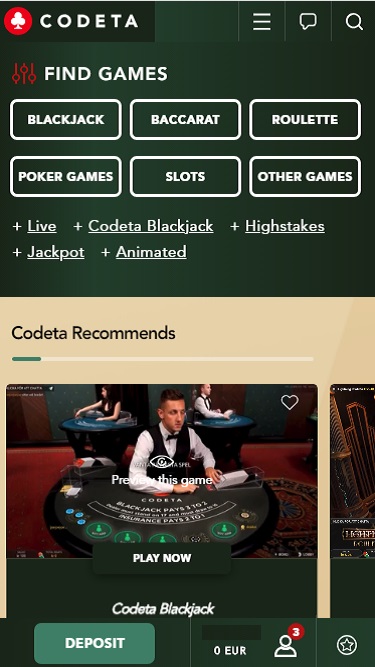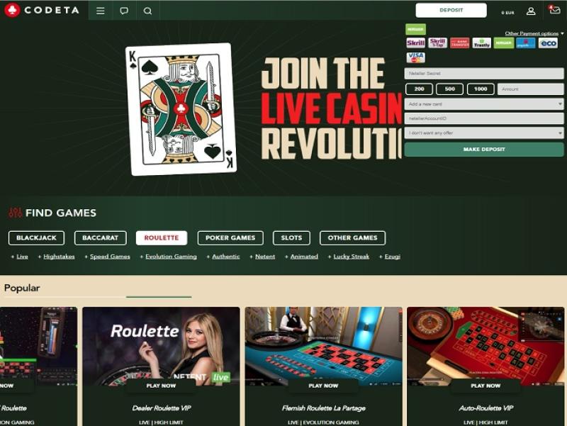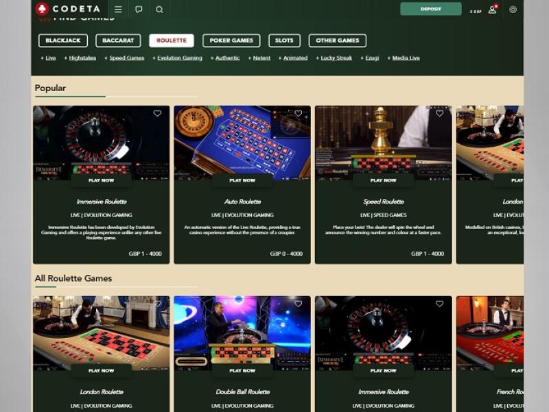 بالإضافة إلى ألعاب الكازينو القياسية، يحتوي كازينو Codeta أيضًا على قسم للموزع المباشر، وهو محور بارز في تشغيل الكازينو.