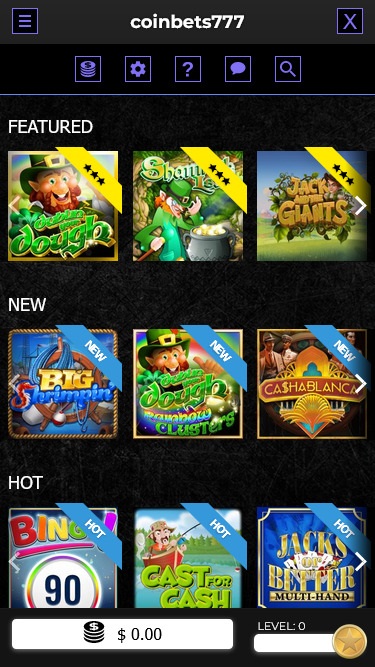 يقدم كازينو Coinbets777 مجموعة متنوعة من ألعاب السلوتس. ومع ذلك، نعتقد أن هذا لن يُشكّل أي عائق لعشاق ألعاب السلوتس، إذ سيتمكنون من استكشاف ألعاب سلوتس جذابة تناسب الولايات المتحدة، مع إعدادات بكرات وأنظمة مكافآت وموضوعات متنوعة يختارها اللاعبون عادةً.