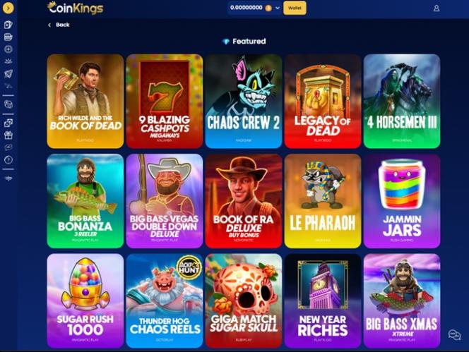 كما ذكرنا سابقًا، يقدم كازينو CoinKings تشكيلة واسعة من ماكينات القمار لعملائه. يتيح لهم اختيارهم الواسع من موفري البرامج تقديم تجارب ماكينات قمار فريدة مليئة بالآليات والموضوعات والميزات الشيقة. أشهر الألعاب التي ننصحك بتجربتها هي Gonzo's Quest، وStarburst، وGuns N' Roses، وJack Hammer، وFishin' Frenzy Megaways، وBook of 99، وHand of Anubis، وBuffalo King، وFruit Disco، وSword of Ares، وDork Unit، و777 Fruits.برنامج نقاط المنافسة