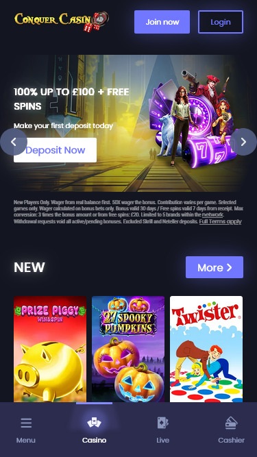 لم يحصل Conquer Casino على تأييد من Wizard of Odds.