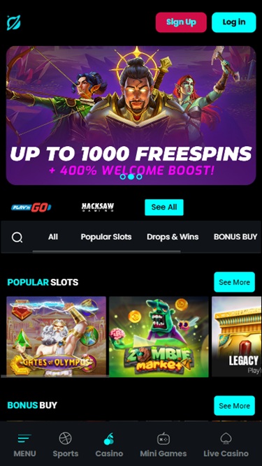 سيتم استقبال اللاعبين القادمين بصفحة رئيسية تضم جميع صفحات الكازينو التي يحتاجونها. في أعلى الصفحة، توجد لافتة متحركة تعرض جميع المباريات الرياضية الشهيرة القادمة، بالإضافة إلى العديد من المكافآت والعروض الترويجية التي قد ترغبون في المشاركة فيها.