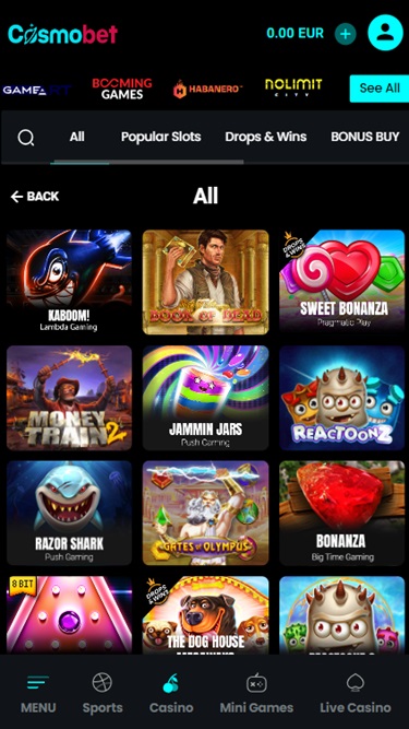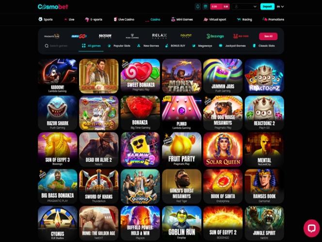 يُثبت كازينو Cosmobet ذلك من خلال إتاحة الفرصة للمستخدمين للاختيار من بين أكثر من 110 مزوّد برامج على موقعه الإلكتروني. هذا عدد ضخم يضم أسماءً لامعة مثل NetEnt و Pragmatic Play و Yggdrasil Gaming و Evolution ، إلى جانب العديد من الاستوديوهات الأخرى مثل LuckyStreak وXprogaming وStakelogic.