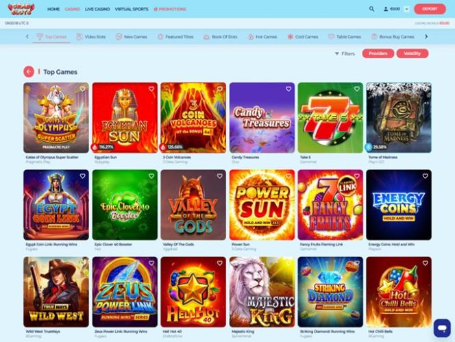 عندما تبدأ في التمرير لأسفل الصفحة الرئيسية، ستجد مجموعة مختارة من أفضل ألعاب ماكينات القمار، والألعاب الجديدة، والمكافآت والعروض الترويجية ، والجوائز الكبرى، والفائزين، وبالطبع، بعض مقدمي الخدمات الذين يمكن العثور على ألعابهم في محفظة الكازينو.