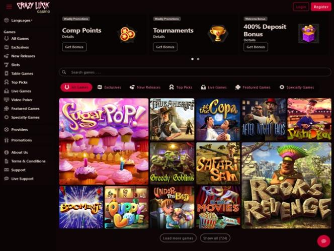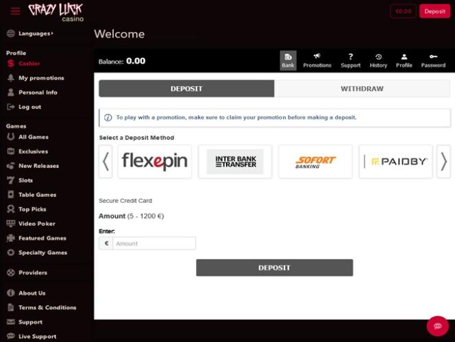 يتم تشغيل كازينو Crazy Luck بواسطة Rival ، ويتوفر برنامج الكازينو من خلال برنامج قابل للتنزيل بالإضافة إلى منصة تعتمد على الويب.خيارات الخدمات المصرفية في Crazy Luck Casino