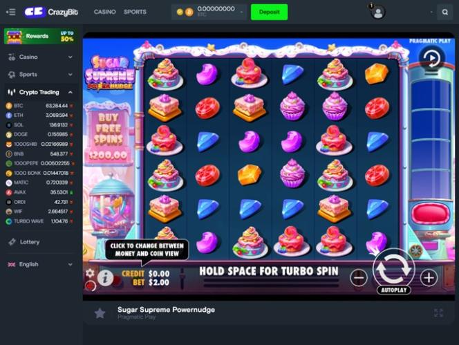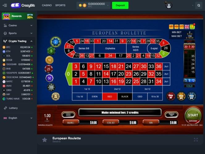 كازينو Crazybit.io منصة مقامرة تُركز على العملات المشفرة، وتُقدم العديد من العملات المختلفة للإيداع والسحب. بيتكوين ، إيثريوم ، سولانا ، دوجكوين ، لايتكوين ، تيثر ، ريبل ، وغيرها، جميعها متاحة لإجراء معاملات سريعة ومجهولة. للأسف، لا تتوفر أي طرق دفع تقليدية.