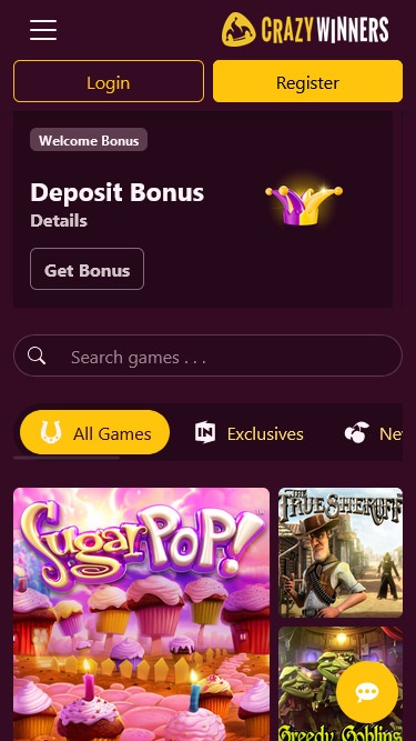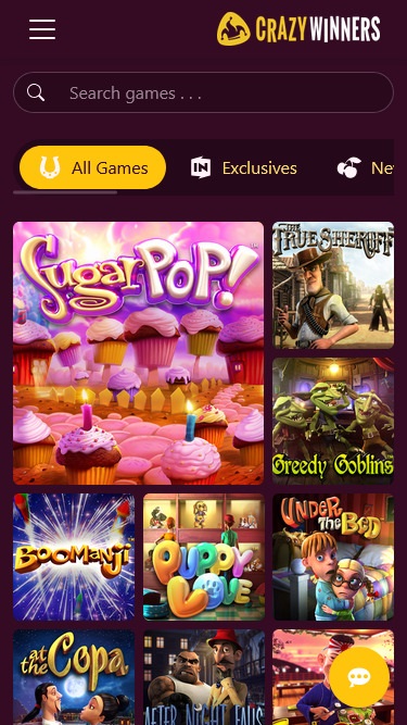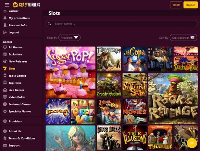 تتوفر العديد من ألعاب السلوتس في كازينو CrazyWinners، ويبرز فيها ألعاب Betsoft ثلاثية الأبعاد، بالإضافة إلى ألعاب Vivo. كما يقدم الكازينو مجموعة مختارة من جوائز Betsoft الكبرى التراكمية، مما يتيح للاعبين فرصة ربح آلاف الدولارات.