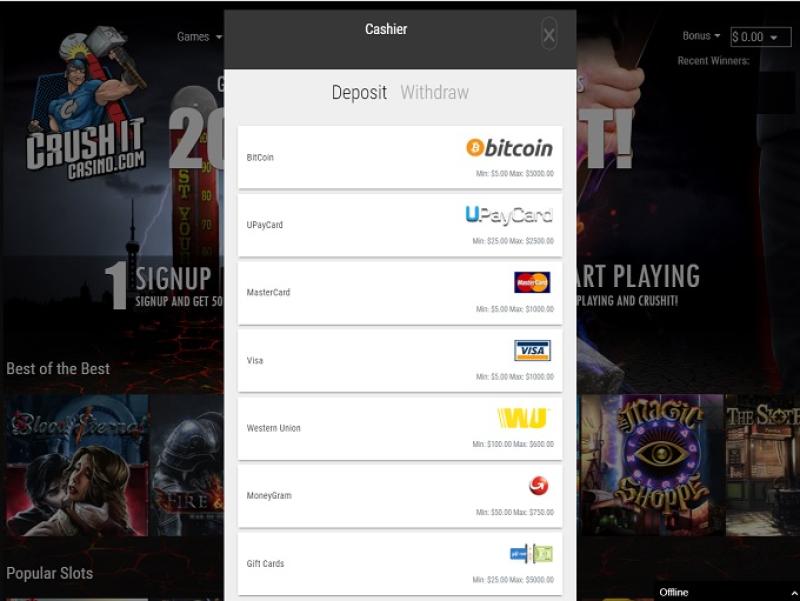 خيارات الخدمات المصرفية في CRUSHIT Casino