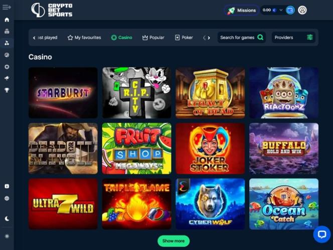 سيسعد عشاق ألعاب السلوتس بمعرفة أن كازينو Crypto Bet Sports يوفر آلاف العناوين الجذابة مثل: Blackjack و Wish Granted و Pho Sho و Aviator و Starburst و Roulette و Wolf Fang - Volcano و Winds of Wealth و Wilds Of Fortune و Book of Helios و Kensei Blades و Alkemor's Elements و Primal Wilderness و Lost Mystery Chests و Gold Tiger Ascent و Triple Juicy Drops و Take The Kingdom و Wheel Big Winner Red Hot Spins و Valhalla Saga - Thunder Of Thor و Stay Frosty! و Return to Paris و Thai Blossoms و Tower Of Fortuna و 7 Fortune Frenzy و Dead or Alive و 88 Frenzy Fortune و Wild Drops و Wild Acres Farm و Jungle Stripes و Mr. Macau و Golden Dragon Inferno و Hat Trick Hero و Bounding Luck و Lava Gold و Big Bamboo و Hot Lucky 7's و Triple Cash or Crash و Mr. Vegas 2: برج الأموال الكبيرة، رغبة القلوب، التزلج على الجليد، بكرات الثالوث، من الخرق إلى الساحرات، مهمة الكابتن: جزيرة الكنز…