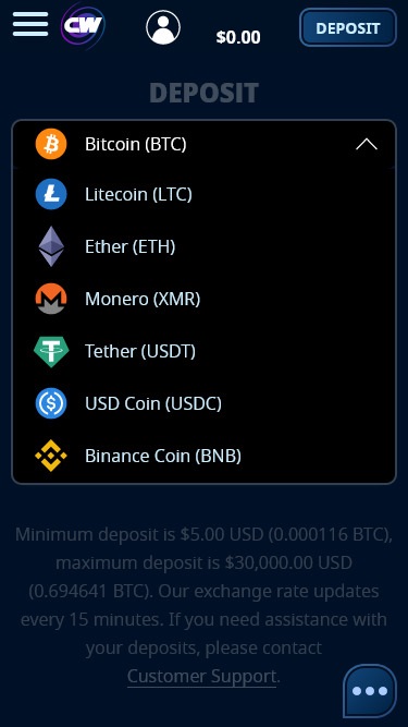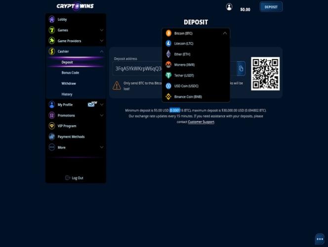 نعتقد أن كازينو إلكترونيًا يحمل هذه العلامة التجارية الشهيرة لا يترك مجالًا للشك فيما يتعلق بخيارات الدفع المتاحة. CryptoWins هو كازينو مخصص للعملات المشفرة فقط، ويتيح للاعبين إمكانية الإيداع والسحب باستخدام مختلف العملات الرقمية الشائعة . يُرجى العلم أن مدة انتظار السحب هي أربع وعشرون ساعة.