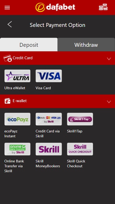 خيارات الخدمات المصرفية في Dafabet Casino