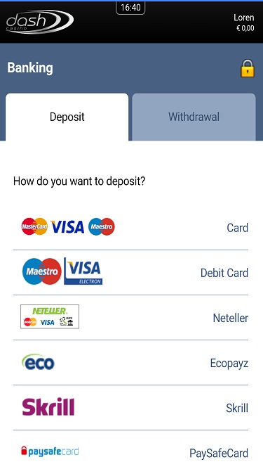 خيارات الخدمات المصرفية في Dash Casino